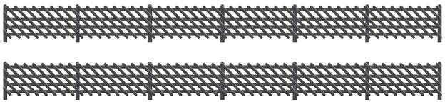 Supplied with pre-coloured parts although painting and/or weathering can add realism; glue is required to complete this model. This pack contains 680mm of classic Midland Railway diagonal style fencing fencing.
