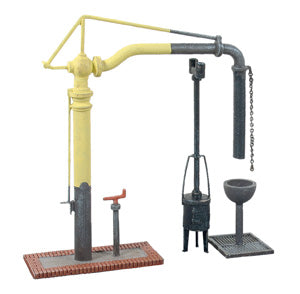 Stations often had these Water Cranes at the end of the platforms so the locomotives could be refilled without detaching them from the train. Also included is a coke brazier, called a 'fire devil' to keep the cast iron pipe from freezing up during the winter. These cranes were usually supplied by a large water tank (see Ratio 506 and 551 and Wills SS34 kits). Supplied with pre-coloured parts although painting and/or weathering can add realism; glue is required to complete this model.