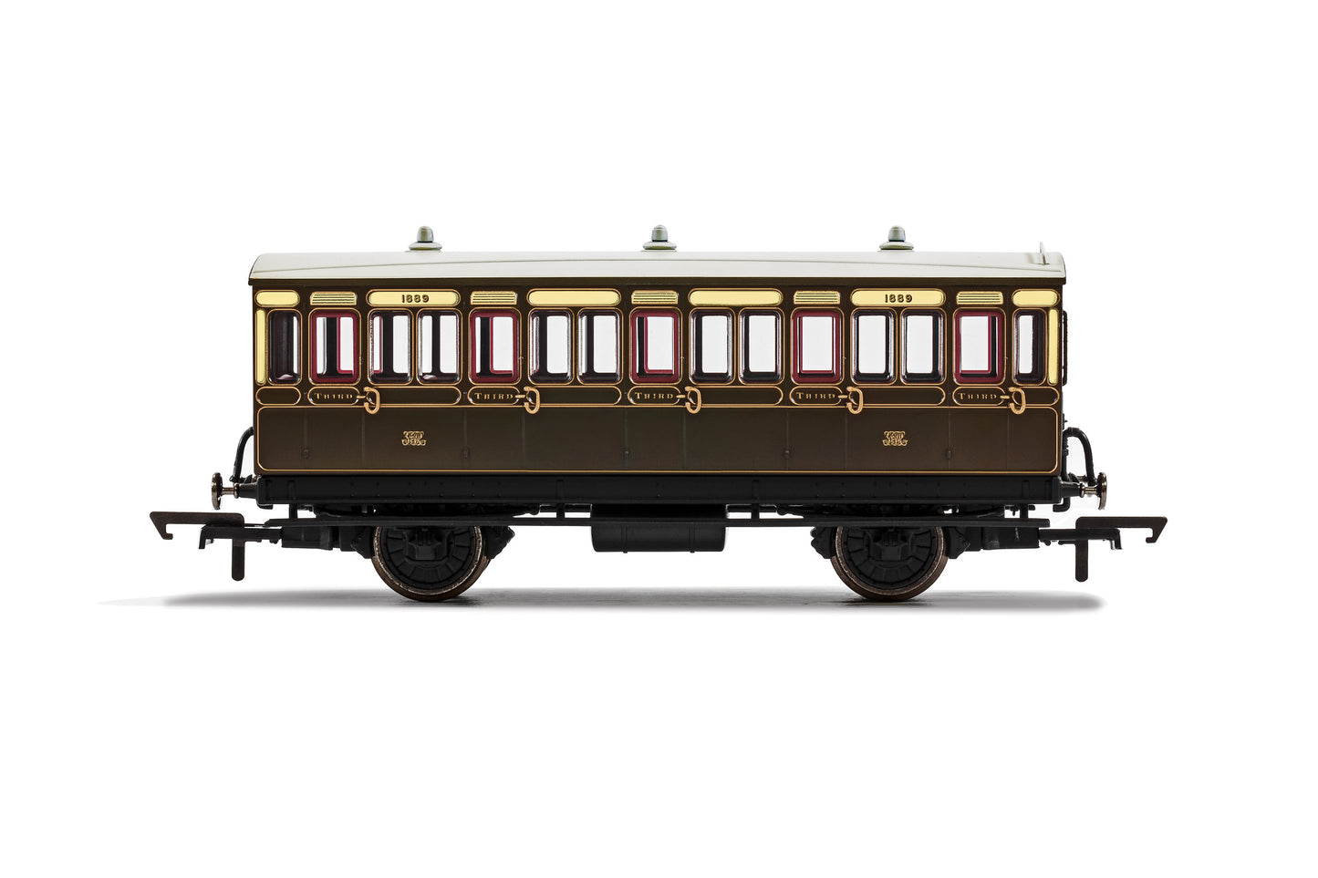 Hornby GWR, 4 Wheel Coach, 3rd Class, 1882 - Era 2/3. This four wheeled coach is a representation of the hundreds which served on the GWR from the Victorian era onwards.